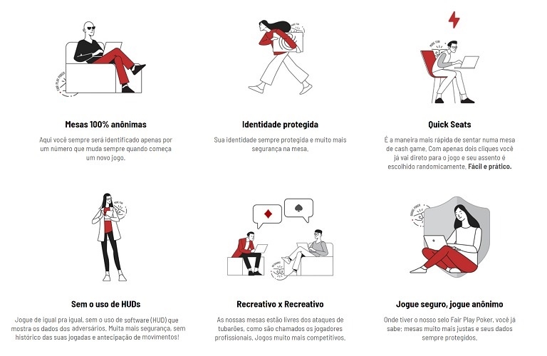 Hoje, o Fair Play Poker é o único site que tem todas as suas mesas 100% anônimas, mais justas, transparentes e seguras. A identidade dos jogadores está totalmente protegida nessa plataforma, marcada com o logo FPP para os poder reconhecer e livre de ataques de tubarões para que tudo seja muito mais competitivo para quem está apenas dando os primeiros passos na disciplina.